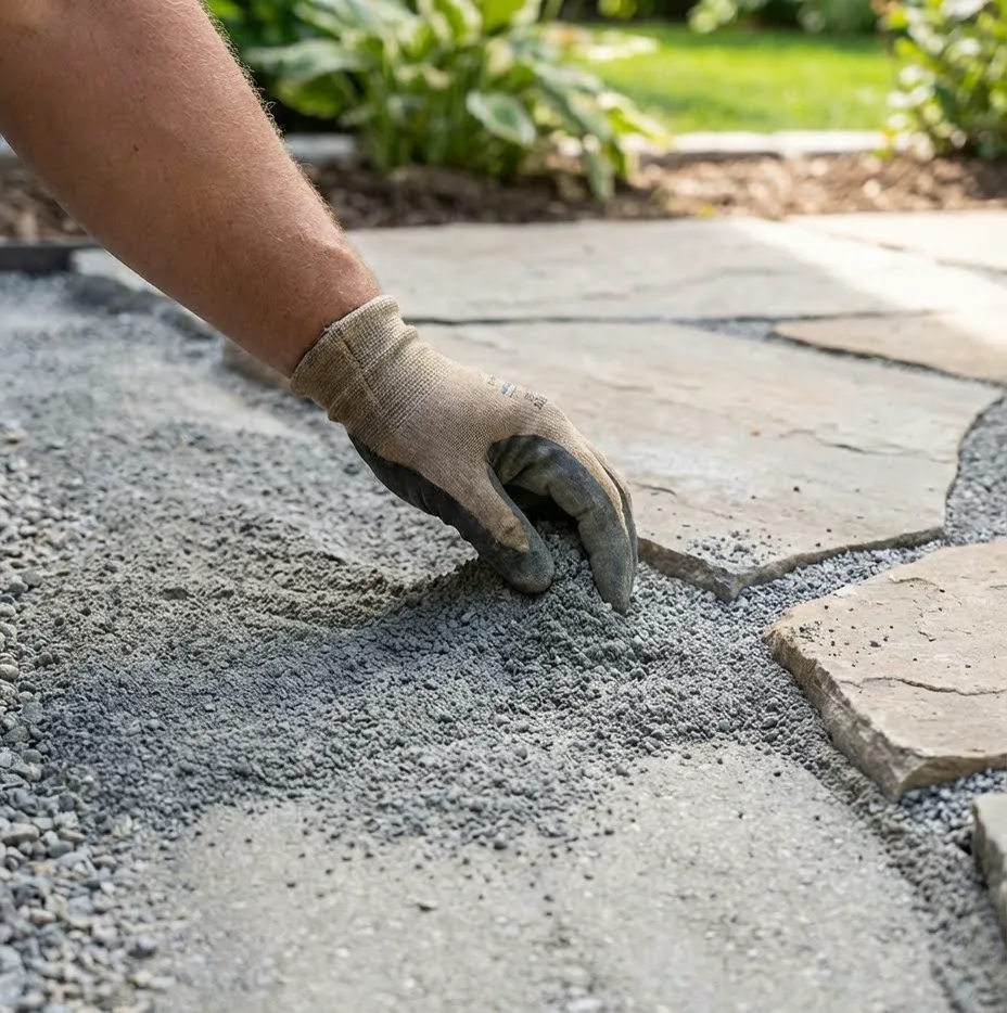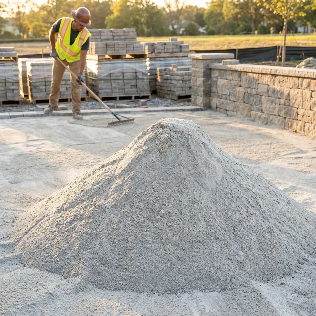 3/8" minus crushed stone screenings — the fine, angular dust-and-chip blend that compacts firm and levels smooth for paver bases, joint filling, and hardscape foundations.