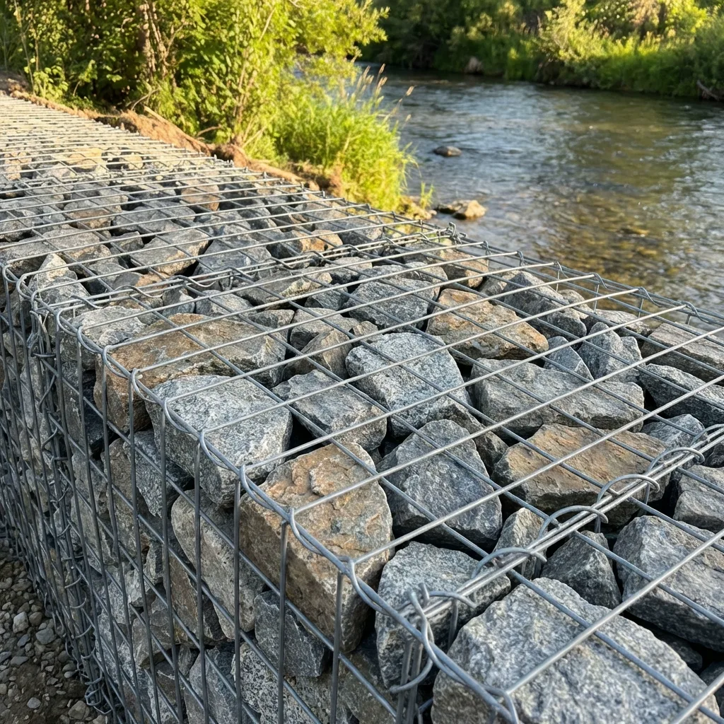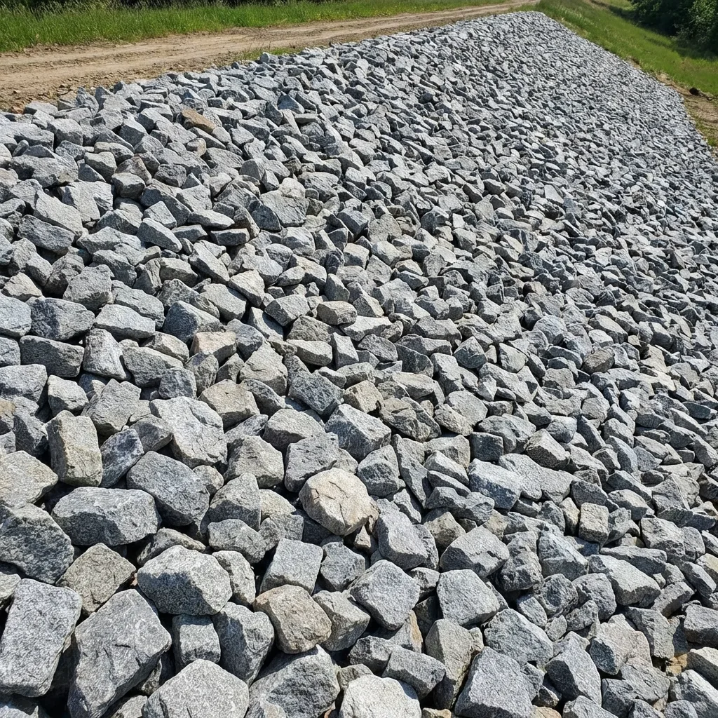 Angular granite or limestone (3–8", ASTM D6092) for gabion basket infill, erosion control, slope stabilization, and channel lining — durable heavy stone that resists water movement.
