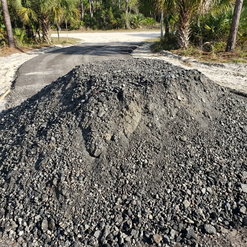 Recycled asphalt pavement (RAP) that hardens over time — the most durable and cost-effective option for long driveways, parking pads, and rural access roads.