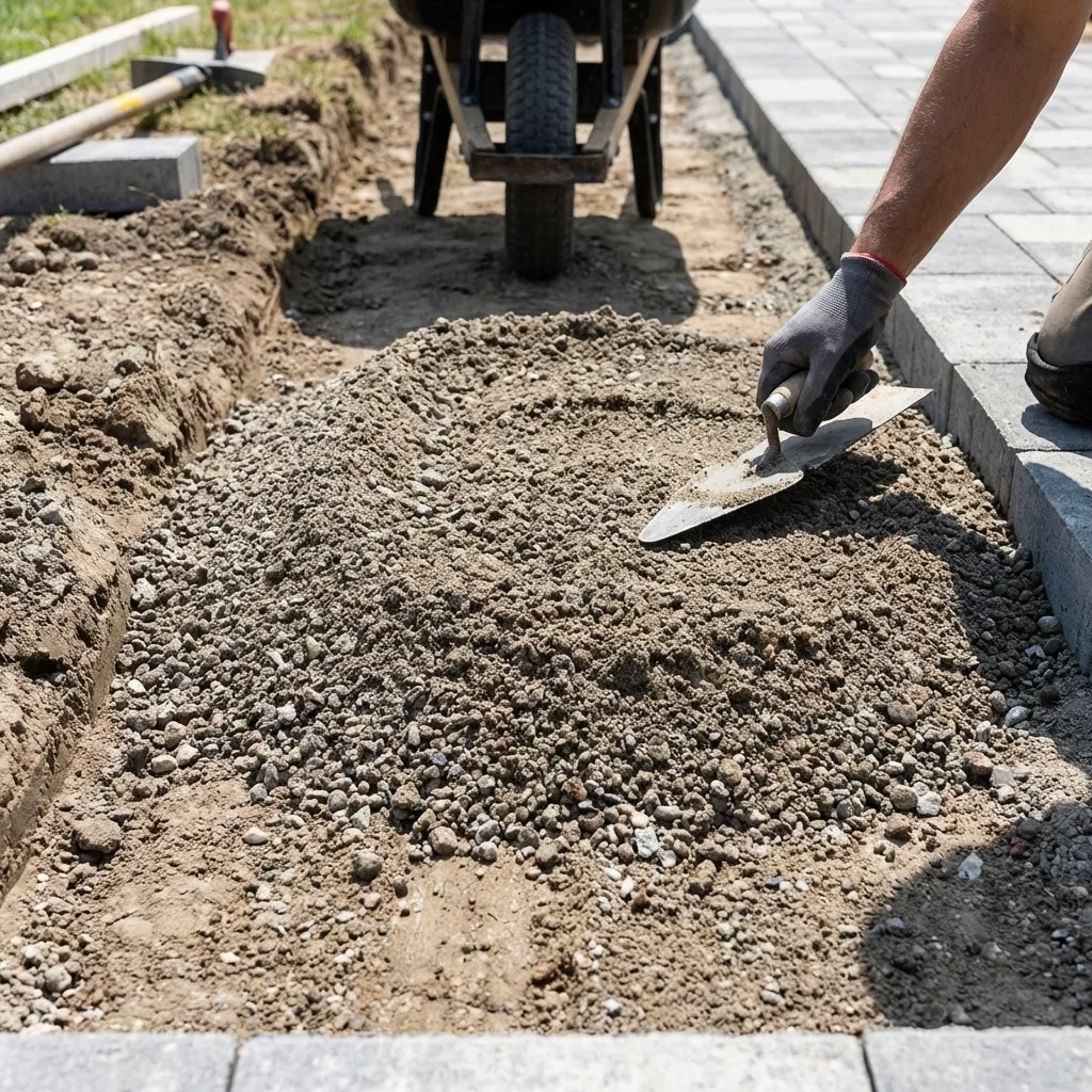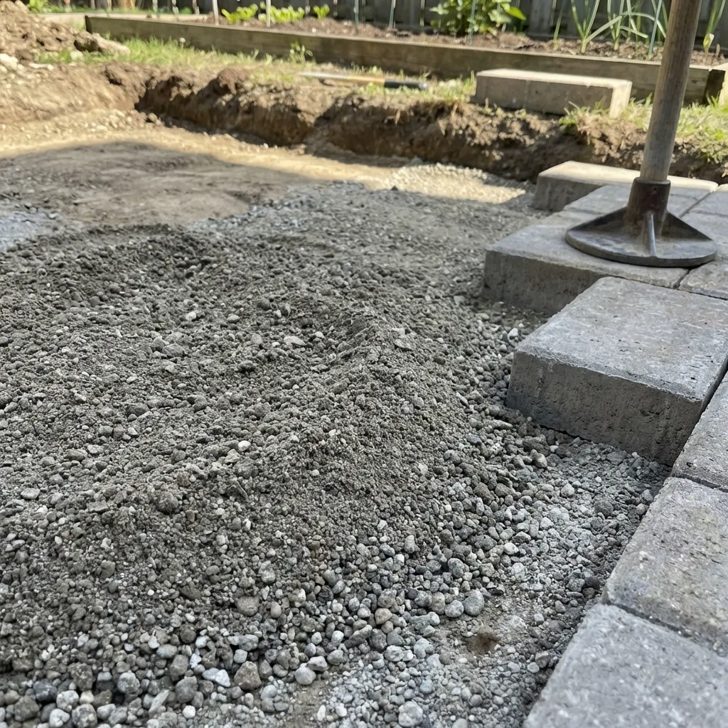 Crushed recycled concrete screenings (3/8" minus, ASTM D2940) — a sustainable paver base and sub-base material with excellent compaction and low plasticity index.