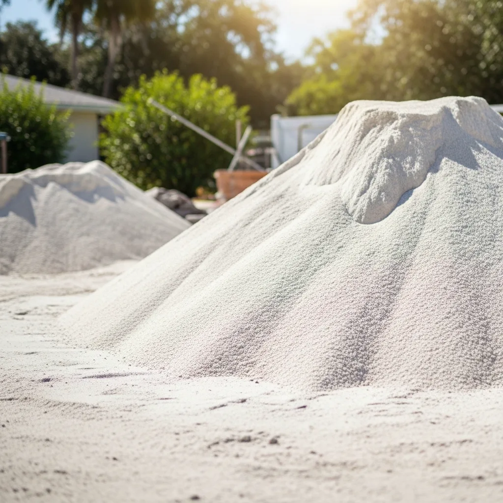 Natural quartz and feldspar sand (0.06–2 mm) with well-rounded grains for volleyball courts, landscaping, water filtration, and beach-themed outdoor spaces.