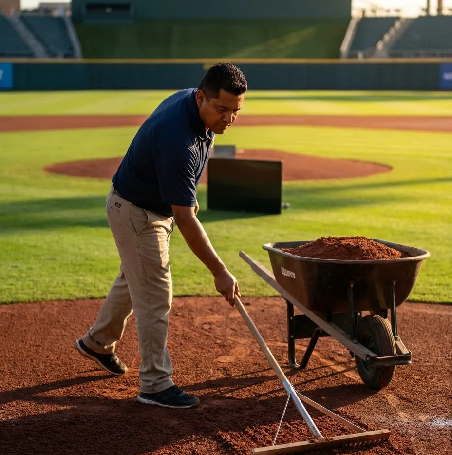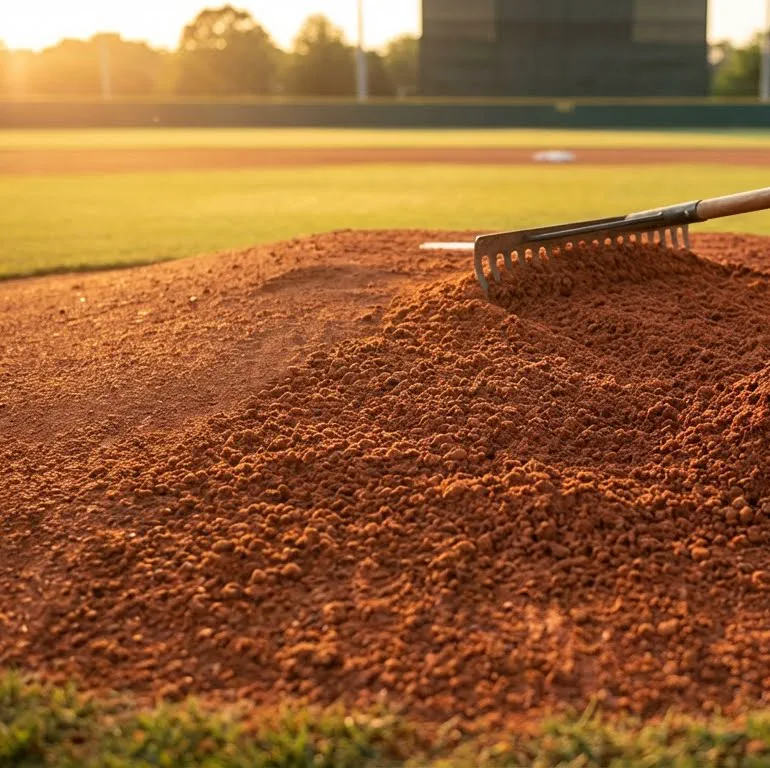Professional-grade infield clay (PI moderate-high, pH 6.5–8.0) engineered for pitcher's mounds, home plate areas, and batter's boxes — plays firm, drains predictably, and holds under cleats.