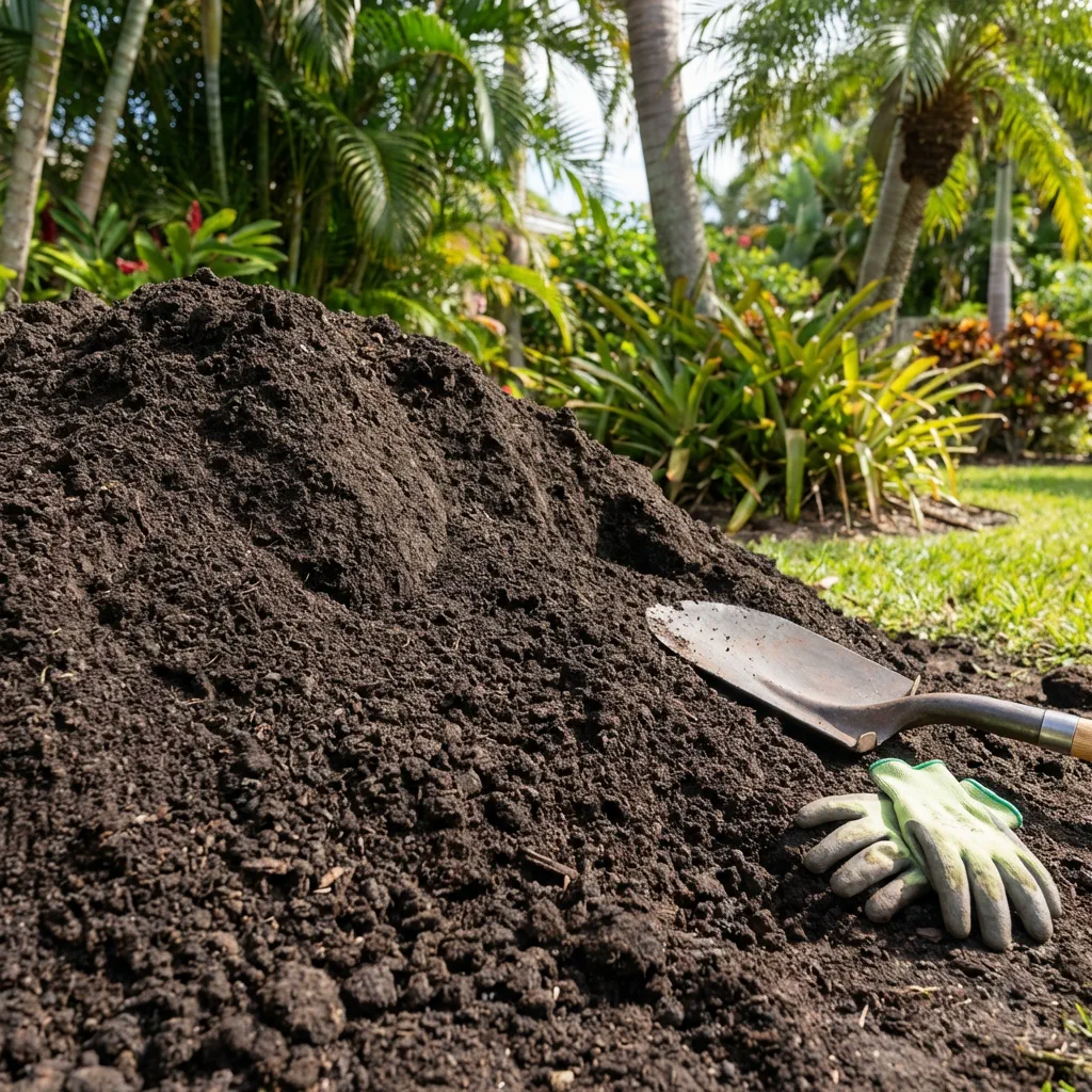 Nutrient-rich screened topsoil (pH 6.0–7.5, 2–10% organic matter) for lawn establishment, garden beds, and landscape grading — the top layer that makes plants grow.